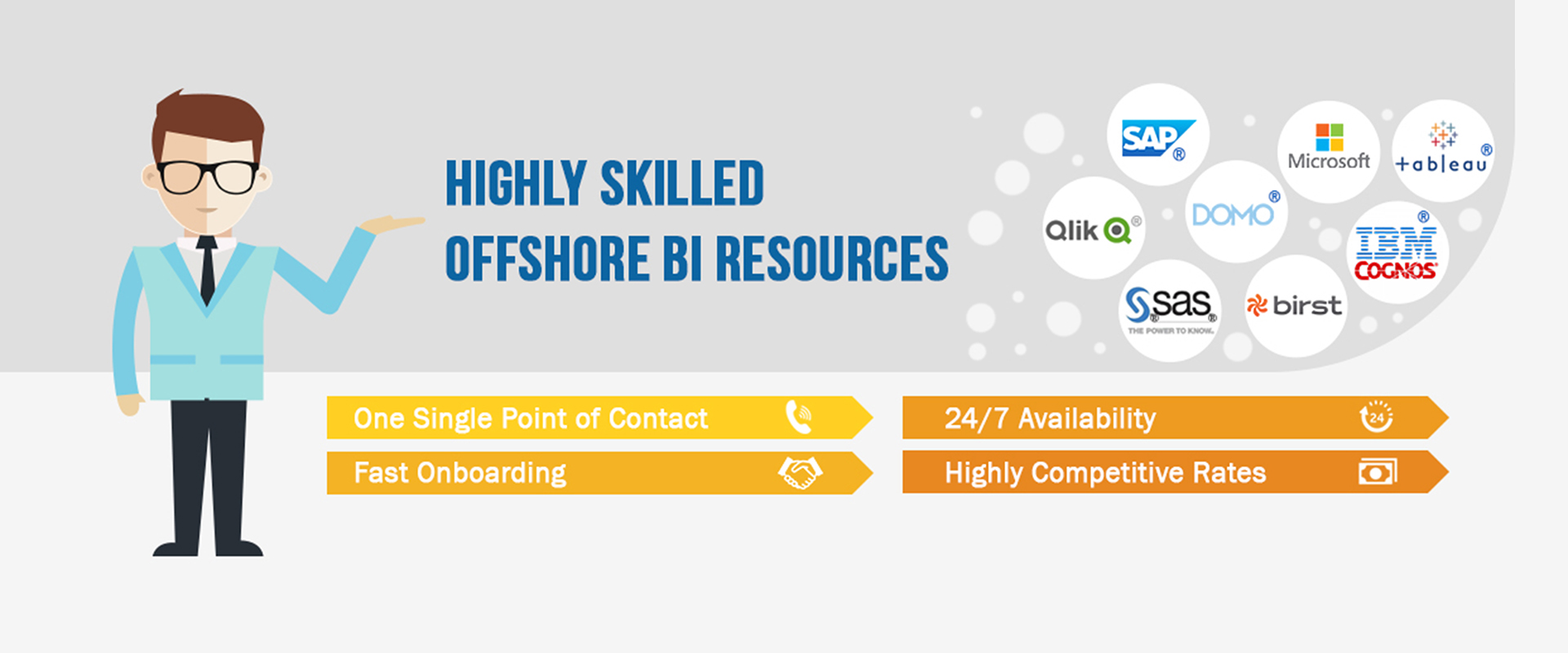 Manzeera Solutions are a Business Intelligence consultancy with a team of highly experienced Offshore BI resources. Our readily available and fully trained consultants have experience across a wide range of technologies including SAP, Tableau, Power BI, Qlik, Domo, BIRST, SAS, IBM and more. Utilising Offshore talent leverages a global knowledge base, allowing access to world class capabilities and the propensity to engage with niche skill sets. At Manzeera Solutions, we always follow a customer specific approach rather than standard model implementation ensuring that each individual circumstance and requirements are thoroughly fulfilled. Our Offshore BI Resources maximise value for customers through our unique approach which prioritises customer success.